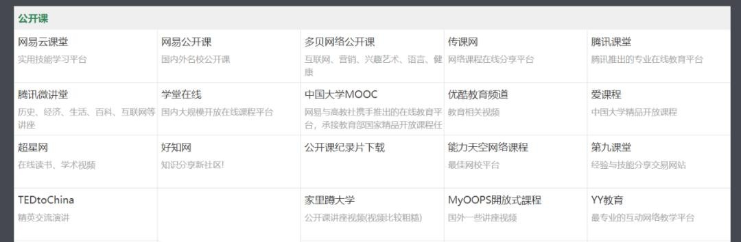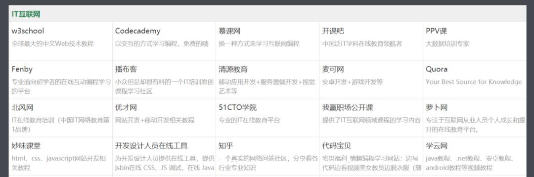 收录的每个网站下都会提供简短的介绍,如果你需要在线的学习资源,千万不要错过这个网站。