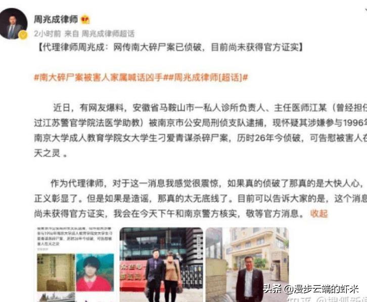 网传南大碎尸案凶手已落网,矛盾来了,留了一个悬念