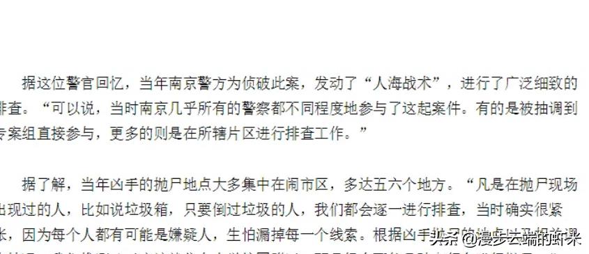 矛盾来了,执行单位说没有斩断了此新闻的真实性,但报警平台又称暂未侦破留了一个悬念,如果人抓住了在调查期间也可以说并未侦破吧。但我更愿意相信执行单位的话,因为他们才是最清楚案情的。 这次爆料不同于以往,因为“南大案”和“砣毒案”都属未破迷案,而且都在那个时候的天之骄子当中发生,影响极大,案情也极为恶劣,我从关注以来几乎每年都有“网友”线索爆料和重梳案情与分析,但像这一次有如此多跟“凶手”相关的料爆出来还真没有。