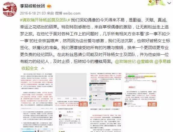 种种劣迹,让李易峰粉丝团怒火中烧,直接在微博上曝光出来。