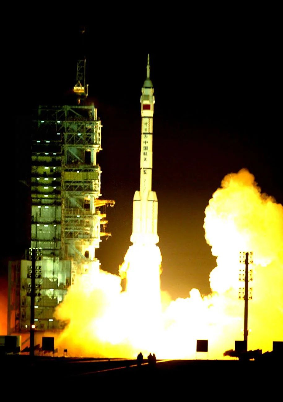1999年11月20日,中国第一艘载人航天实验飞船神舟号在酒泉卫星发射中心发射升空。神舟号完成太空飞行实验之后,在内蒙古中部地区成功着陆,中国载人航天工程首次太空飞行实验成功。新华社发