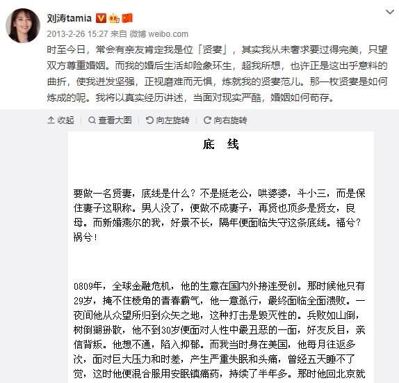 2012年,刘涛在节目中说:“他是个好人,我对不起他。”