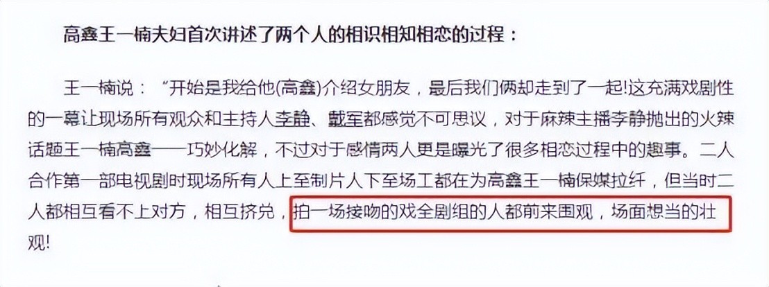 在这部担任配角的电视剧里,王一楠认识了高鑫。