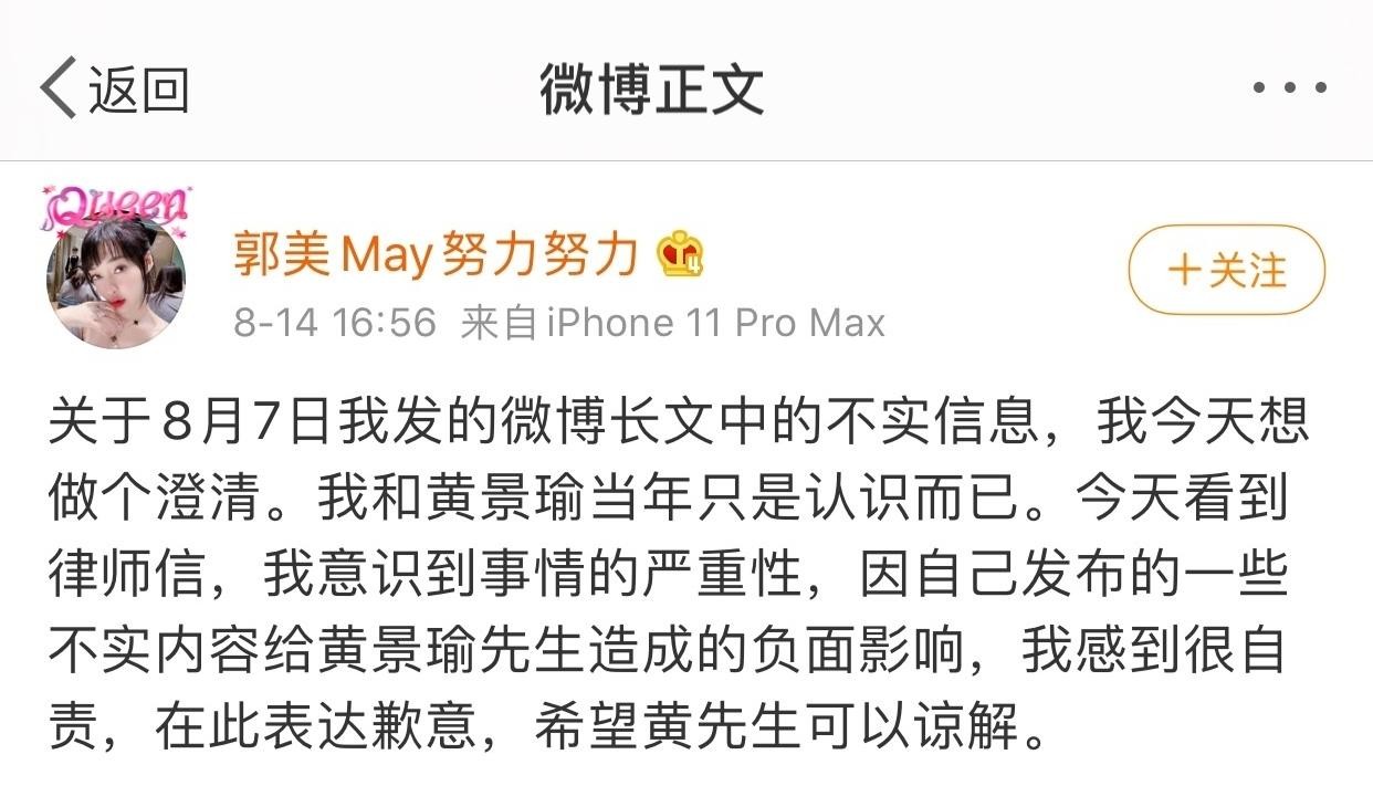 9月份郭美美通过视频公开致歉,视频中的她为自己的所作所为忏悔,声泪俱下,语气诚恳。