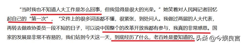她说过:中国整个的改革开放都有参与,真的非常感恩。