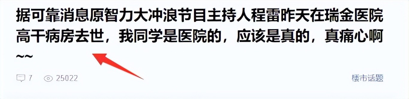 更有网友直言,他和上海电视台的人求证过了,程雷仍在上班,去世的消息是假的。