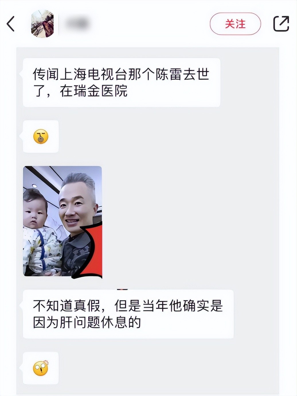 曝主持人程雷因肝病去世,年仅51岁,本尊晒合影回应,近况被曝光
