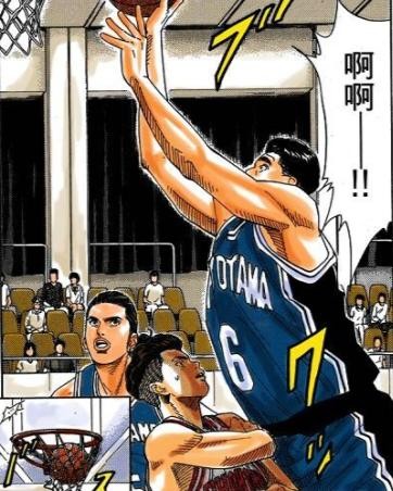 在比分拉大到9分的时候,赤木执行了安西老爹的战略意图,主动要球后专打内线,连续得分后,扣篮提升了士气。