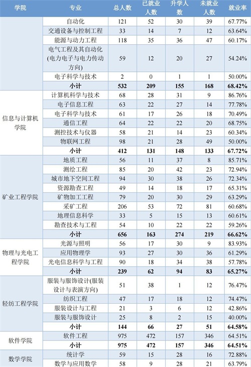 从这个角度看,太原理工大学的学风应该很好,要知道不是哪个高校都能随随便便30%左右的考研录取率。部分家长很关心自己孩子专业考研率,但2021届毕业生就业质量报告还没出来,所以小编把2020年的相关数据也贴在下面,有兴趣或者需要的朋友可以自己去看。
