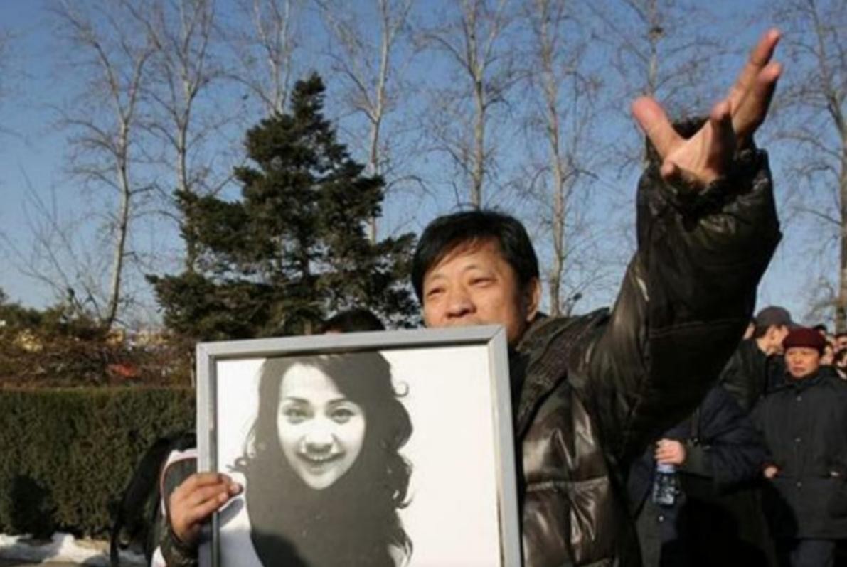 从媒体曝光的照片中我们可以看到,葬礼上她的父亲抱着她的遗照,表情轻松,嘴角微微上扬,露出了笑容。