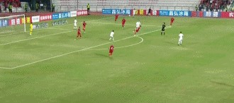 上半场比赛,双方对抗很激烈,叙利亚猛攻中国队右路,中国队则频繁穿插跑位撕扯对方防线。第18分钟,马瓦斯冷静挑传,奥马里高高跃起头球破门,叙利亚1-0!