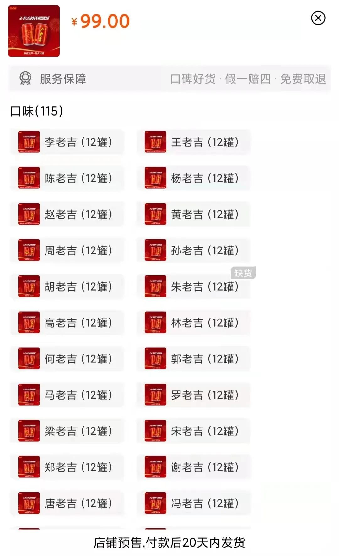 第三个区别就是预售制,百家姓版本并不是随时有货,下单之后会在20天内发货。而老版王老吉货源充足,随时可以发货。