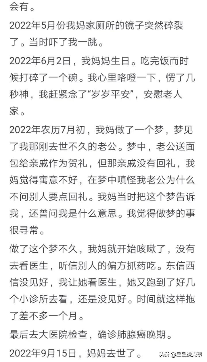 细细品味,那些亲人离世前的蛛丝马迹,仿佛命运在耳边低语:有时候是梦境的牵引,有时候是无缘无故碎裂的物件,还有时候是多年的手镯忽然断裂,这些仿佛都是不详的前奏曲。