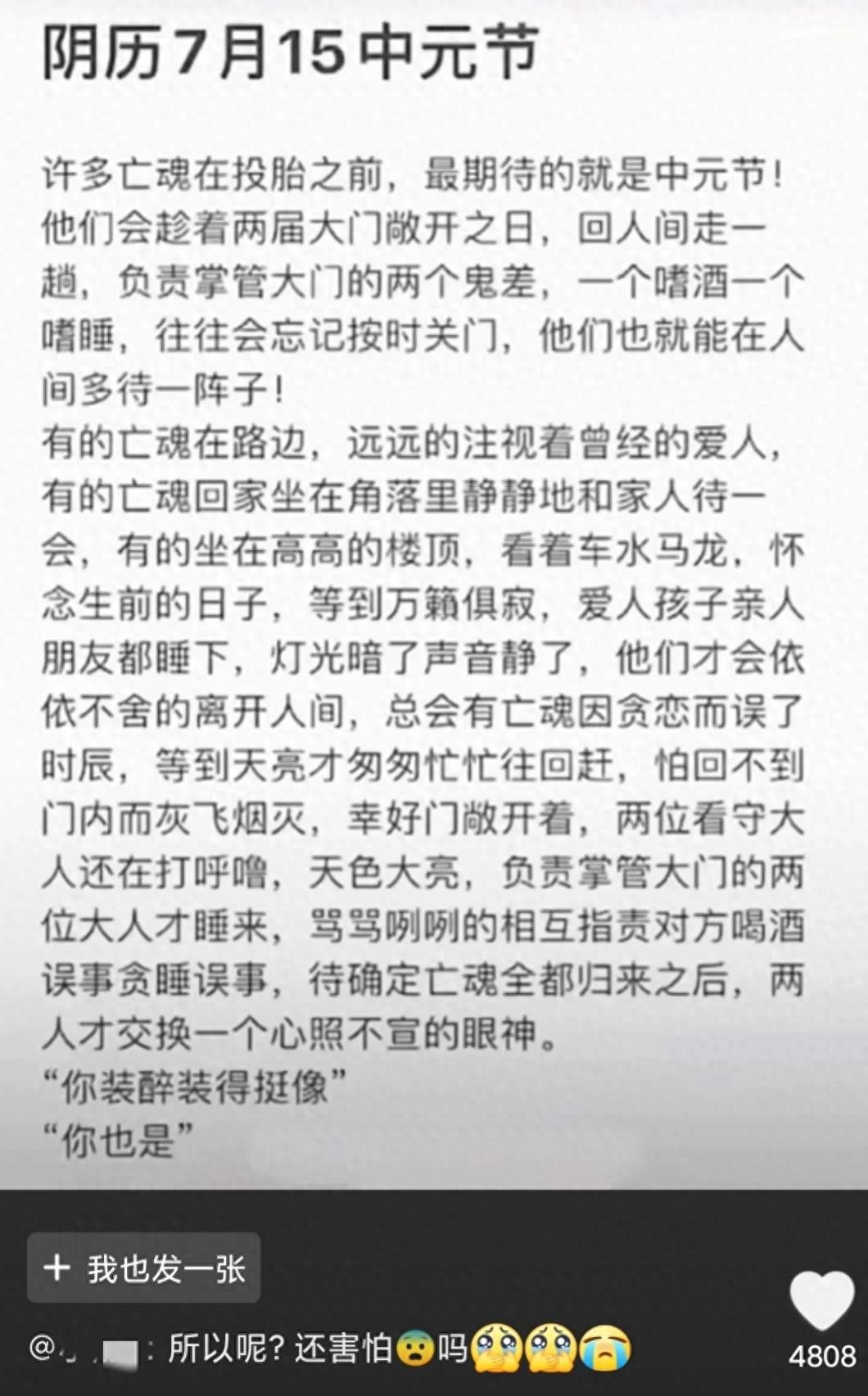 更有人说对于那些没有亲人挂念的孤魂,他们就只能在街头游荡,再拾一次人间的烟火。