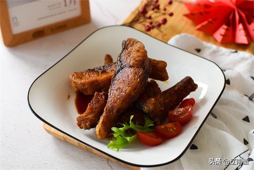 炸好的鱼块捞出沥油,趁热浸在之前煮好的汤汁中,熏鱼就做好了。