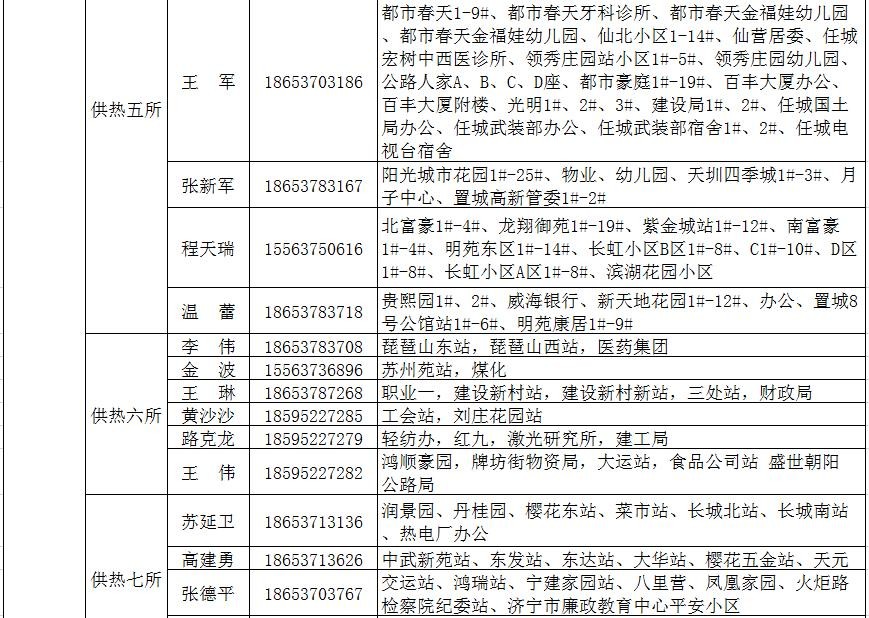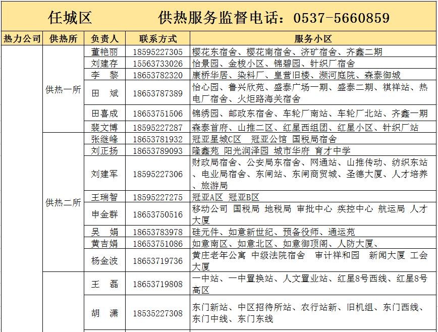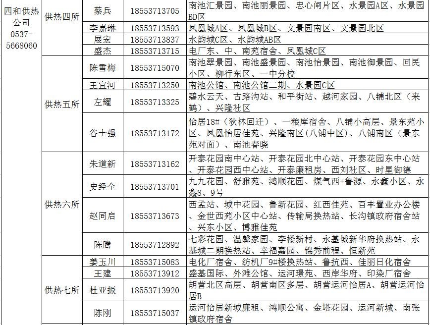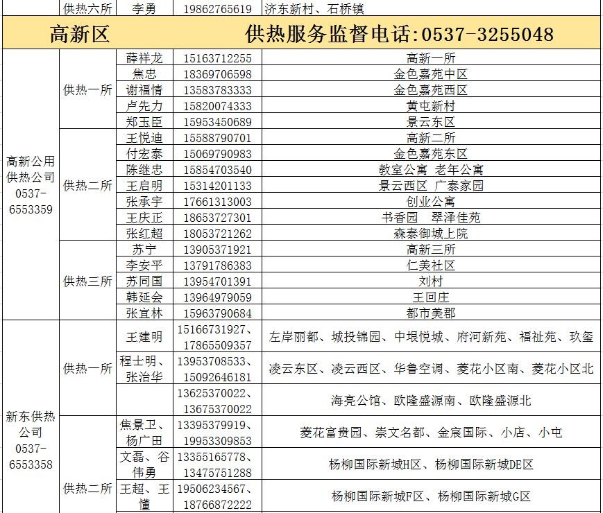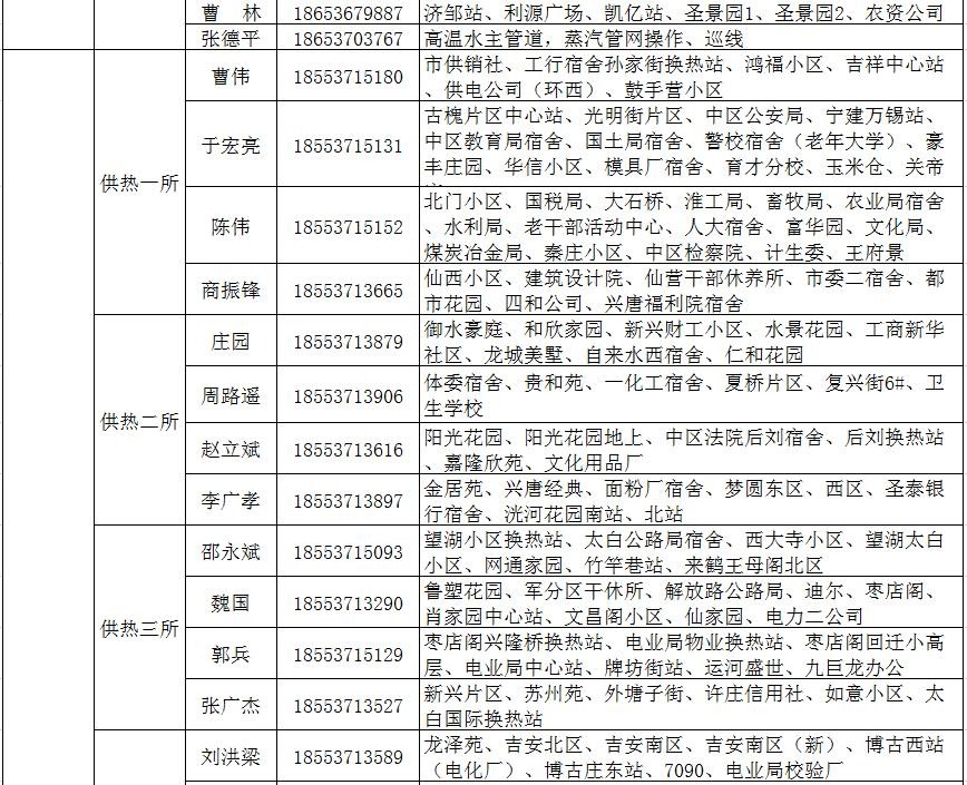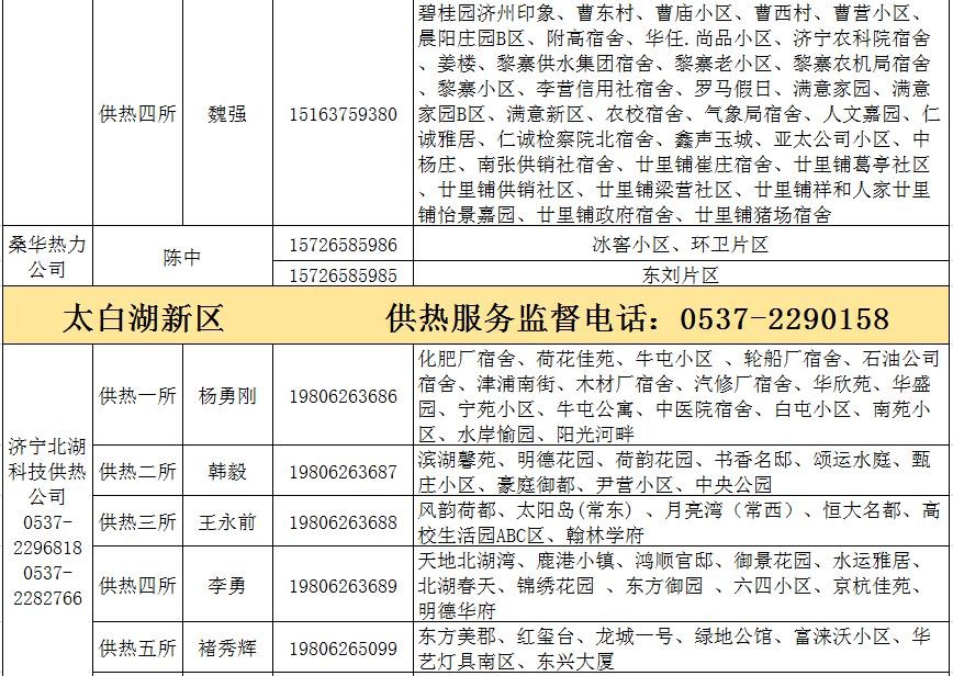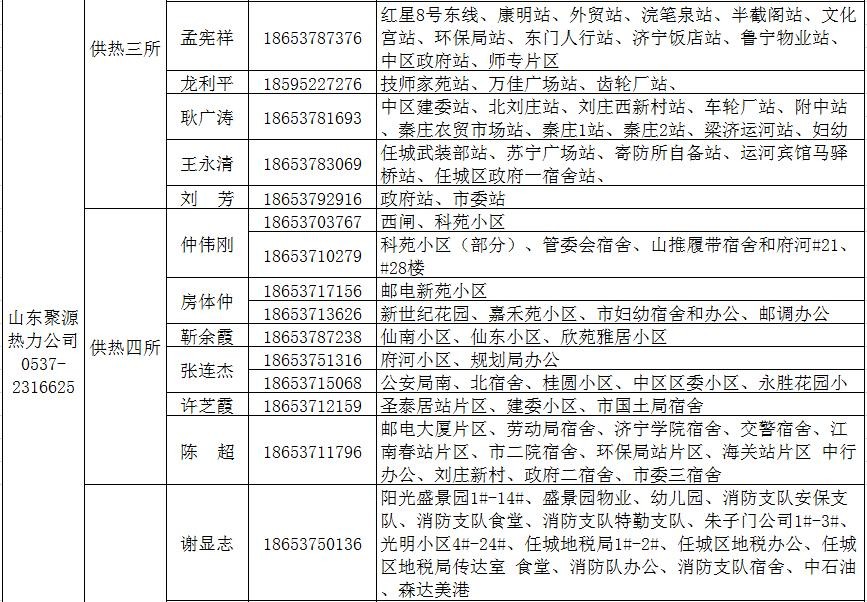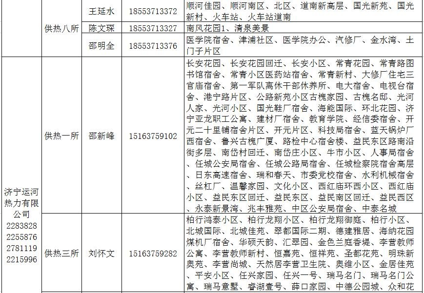济宁市城区供热服务电话和服务片区