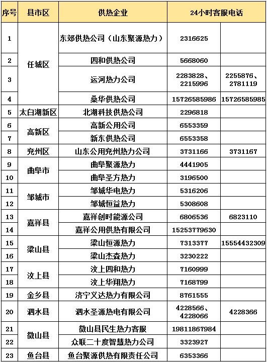 最全最新!济宁今冬供热服务电话来啦