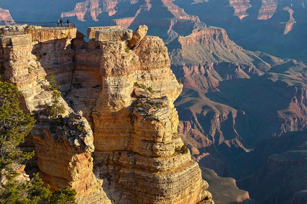 大峡谷全长446公里,平均宽度16公里,最深处2133米。“科罗拉多”在西班牙语中意为"红河”,这是由于河中夹带大量泥沙,使河水及岩石常显红色,故有此名。科罗拉多高原为典型的“桌状高地”,也称桌子山,这就是我们所看到的山顶部平坦,侧面才是陡峭的山。大峡谷的山石大都为红褐色,在阳光的沐浴下,岩石的色彩则时而是棕色,时而为赤色,时而又是深兰色,变幻无穷,彰显出大自然的斑斓诡秘。