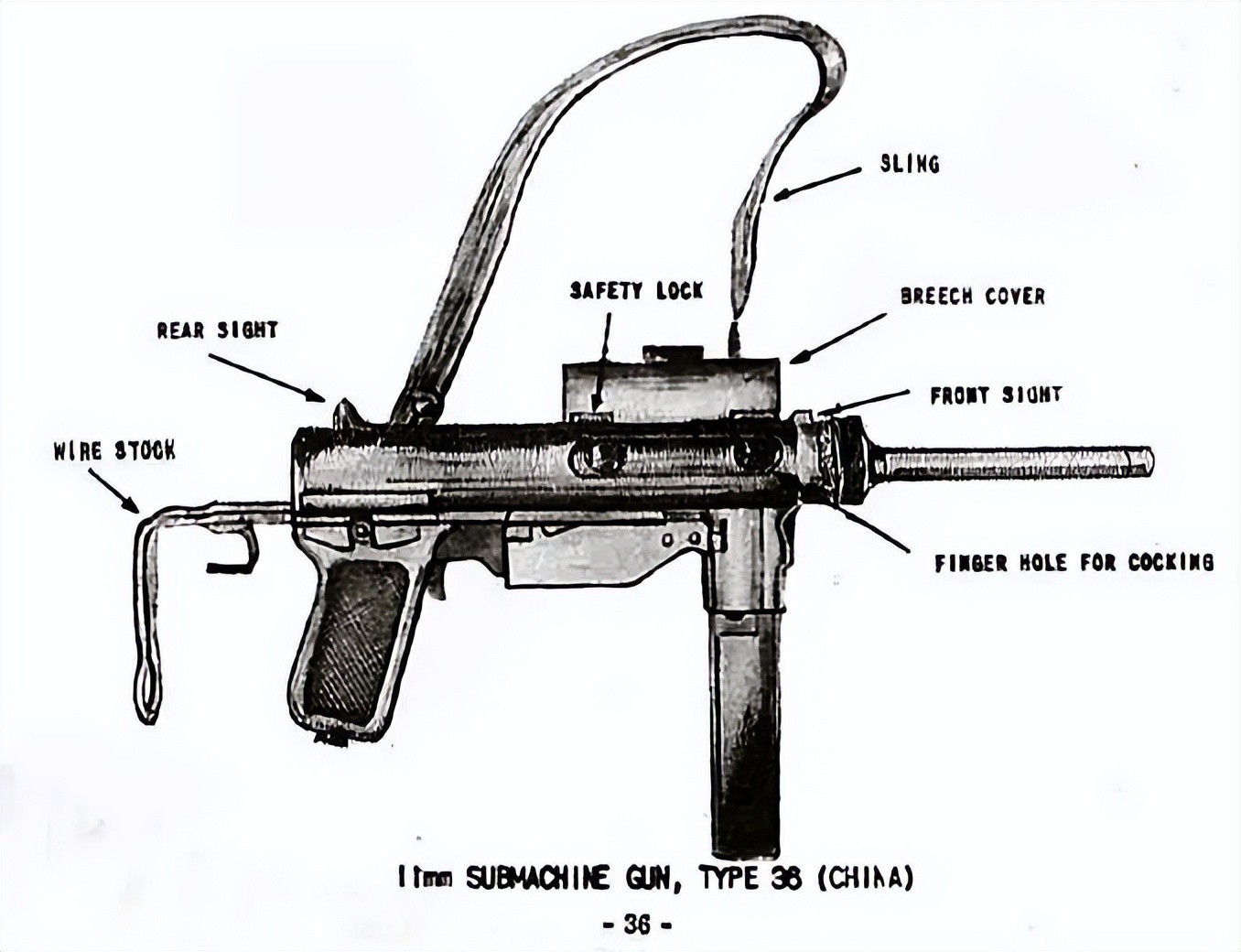 国产版M3黄油枪,沈阳兵工厂生产的民36式冲锋枪-三七式冲锋枪