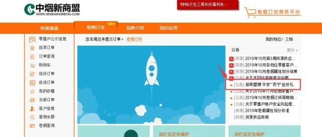 中烟新商盟官方公告位置