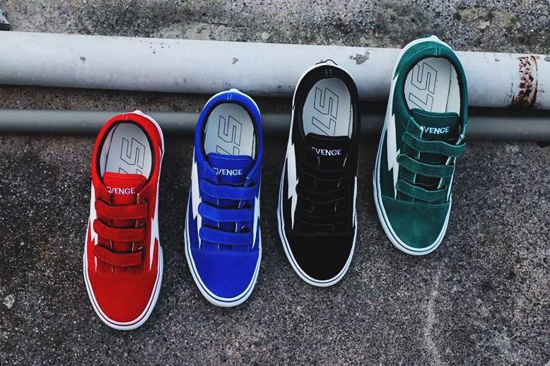 由上年酝酿出大势的 Ian Connor 自家鞋作 Revenge x Storm,灵感来自 VANS 的 Old Skool 鞋款,但细节上却由Ian Connor所主宰,将经典鞋侧 Logo 换成闪电图案并用皮革缝制上去,后跟的「OFF THE WALL」则变成充满玩味的「OFF THE SHXTS」字样;另外亦以刺绣将 Revenge 绣于鞋舌,完全将鞋摇身一变成有着 Ian Connor 自己特色的鞋款。而另一边厢有留意 Revenge x Storm 的各位,会发现其实仍有另一款设计,它本为 Revenge Skate Team 而设的,但现在有品牌便隆重向广大鞋迷带来以「魔术贴」取代原本绑带设计的 Revenge x Storm 滑板鞋,同样配备五款配色包括红、黄、蓝、绿及黑,目前已可在NiL网上店舖入手。