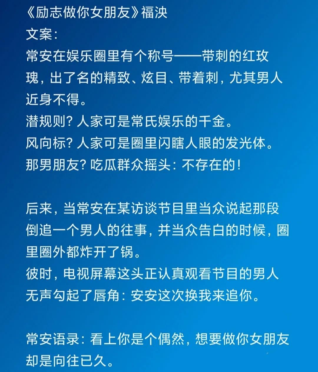 女主一次偶然在乡下拍戏的时候偶遇男主,并对男主一见钟情,之后还独自一人去男主家乡。女主很飒很可爱,不是傻白甜,还很会撩,很宝藏!男主一开始很冷漠拒绝女主,觉得自己与女主不相配。到最后认清自己的心后对女主很宠!
