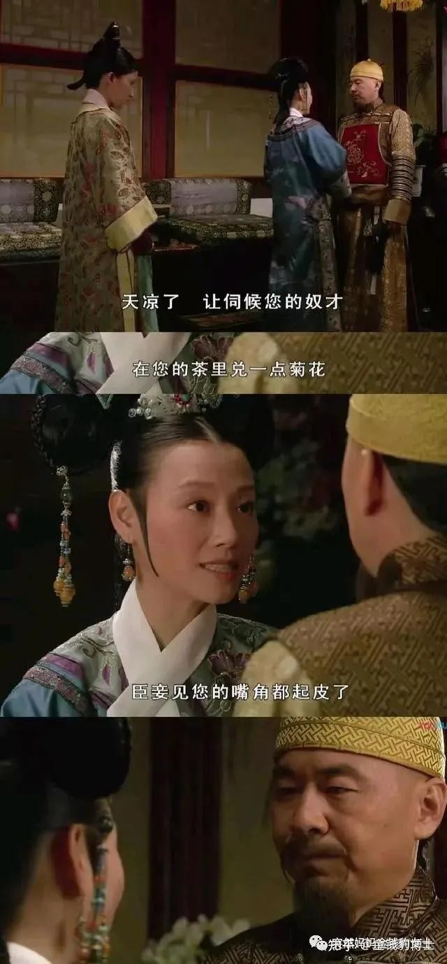 安陵容小产时,皇后说“如果鹂妃够聪明,就该知道,一个男人的怜悯和同情足以让她真稳脚跟”。是的,端妃在潜邸时,受命于皇上和太后,将堕胎药端给了华妃,被华妃强灌红花终生不能生育。但端妃对皇上毫不抱怨,令皇上老baby心存愧意。