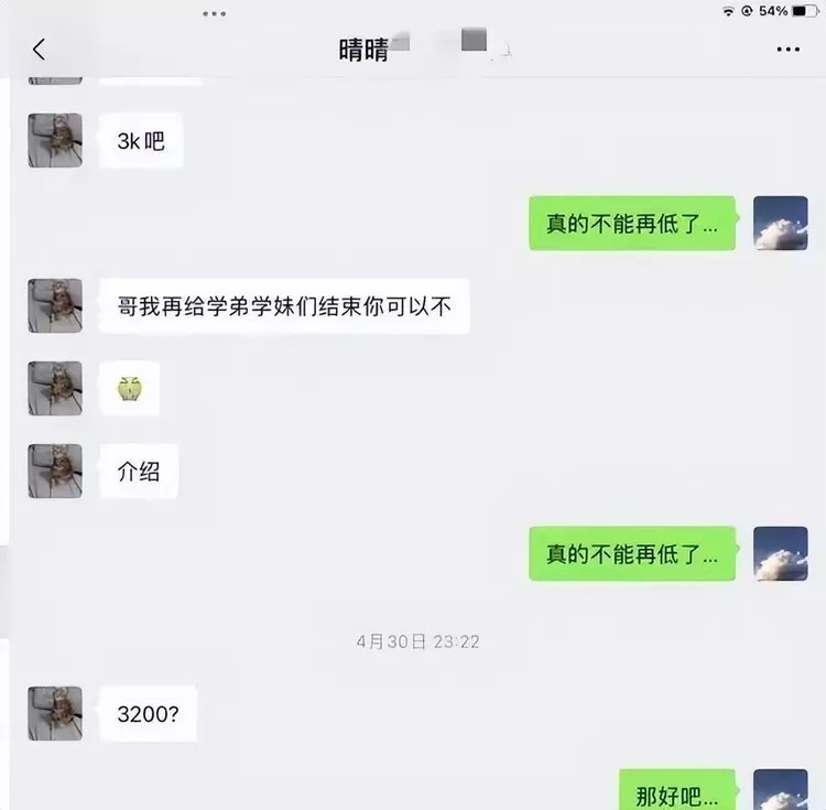 一套菜市场大妈般的讨价还价下,枪手无奈妥协了两位学生的要求,价格最终敲定在3200元。
