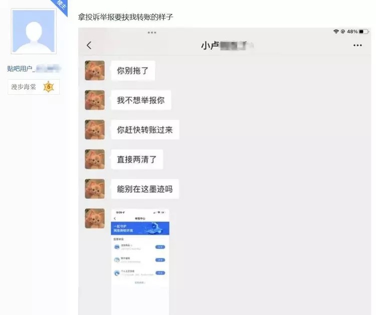 心情烦闷之下就将此事发布到了网上,吐槽下最近碰见的无赖,并将当时的聊天记录也给发了上去。