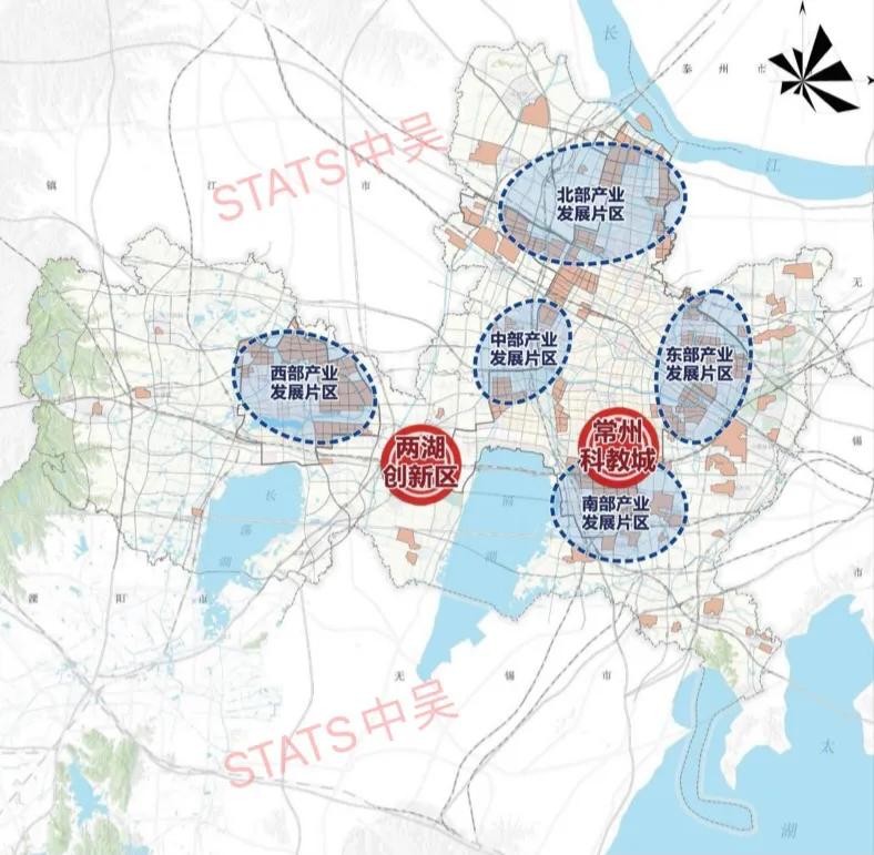 一主:常州中心城区。包括金坛、武进、新北、天宁、钟楼、经开区的集中建设区