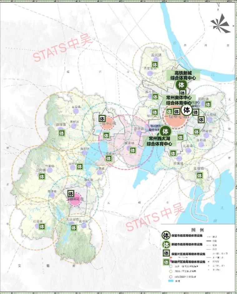 规划形成3处市级综合体育中心,保留常州奥体中心,规划新建高铁新城和常州西太湖综合体育中心。