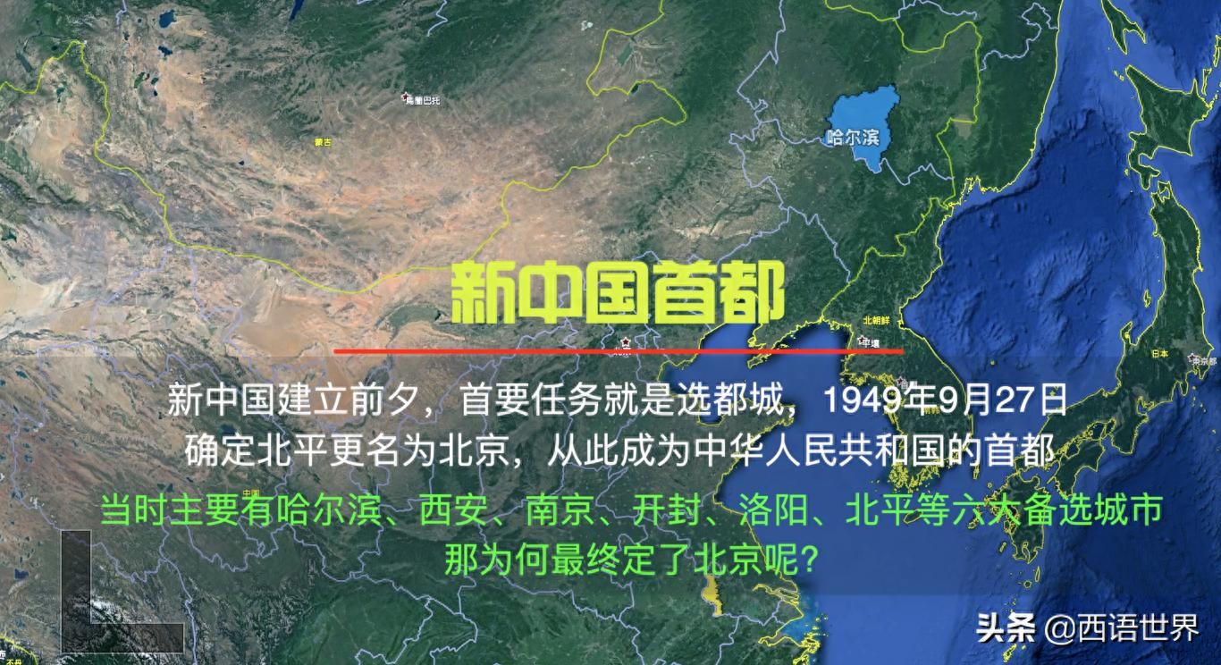 新中国选首都,当时共有6个备选城市,分别是北京,哈尔滨、南京、西安、洛阳和开封,
