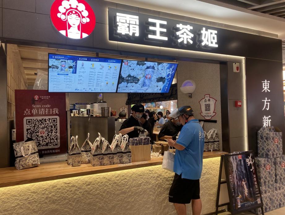 在霸王茶姬福州东百中心店商品 LED 电子屏幕上,40 多种商品用 " 冷 / 热 " 标注,而对于冷饮中冰量选项无任何提示信息。