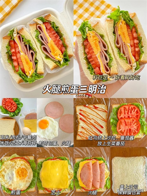 火腿三明治以其简洁明了的风味深受喜爱,火腿的咸香与面包的柔软完美结合。