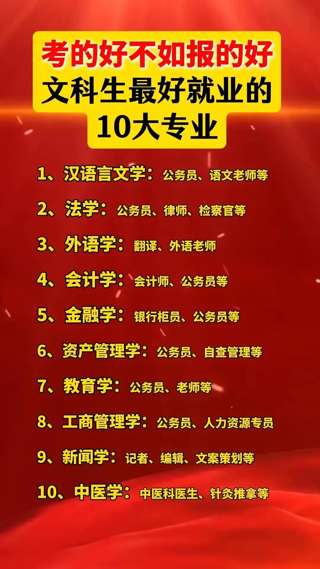 特点:适合从事教育、编辑、翻译等工作,语言类专业(如英语、小语种)需求稳定。