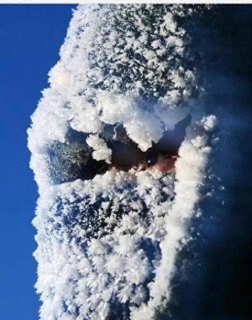零下三十度的残酷天气,帽子上口罩上都是冰块,仅剩下两只眼睛,他那坚定地眼神,无畏的精神,值得所有人去尊敬!