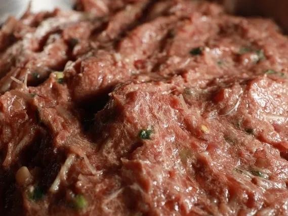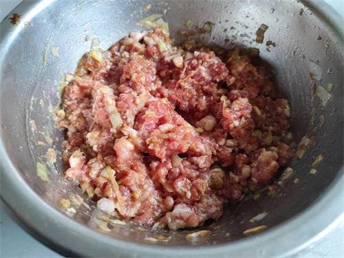 调制牛肉圆葱馅饺子是比较考验厨艺的,也就是牛肉馅要偏瘦一些,因此需要打水来使牛肉更加的嫩滑,而牛肉馅打水也是特别讲究比例的,一斤牛肉馅要打进去一斤水,这样的牛肉馅才足够嫩滑,并且一咬爆汁。
