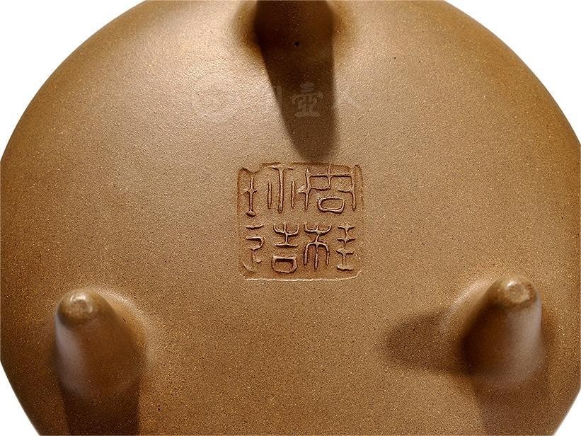 此件汉韵双线壶,为周大师丙子年(1996年)春月创作于宜兴紫砂工艺厂研究所,采四号井粗砂底槽清,全手工精心抟制,此款式所做极少,市面难觅,属收藏级珍品。520CC大品,辅以古朴浑厚、温润柔和的色泽,展现出儒雅大度之风,加之胎质中隐约可见的金砂,质感非常强烈,可玩性高。