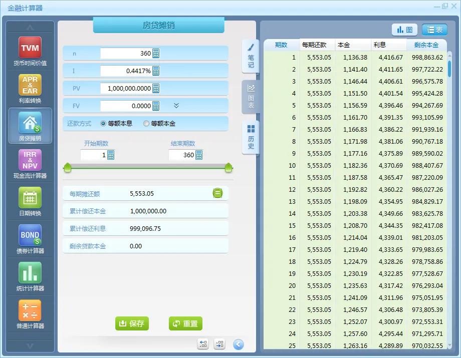 贷款期间,房贷每月还款金额为5553.05元,30年总利息999096.75元,总还款额为1999096.75元,对于工薪阶层,每月5553元的还款额,压力不算小。