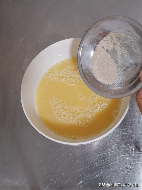 四、倒入酵母粉5克搅拌均匀