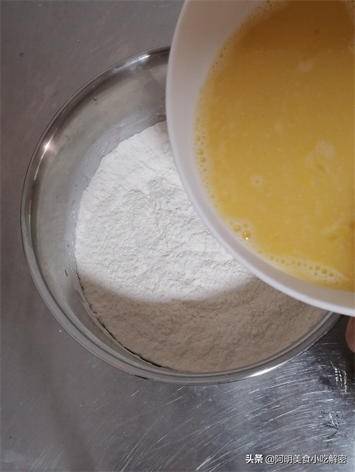 五、边倒边搅倒入面粉中