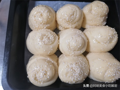 十五、撒上白芝麻,发酵至两倍大