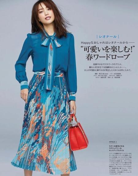 以蓝色为主要元素蓝色的长袖,她的衣服亮点在于他领口的蝴蝶结,给人一种魅力的感觉。