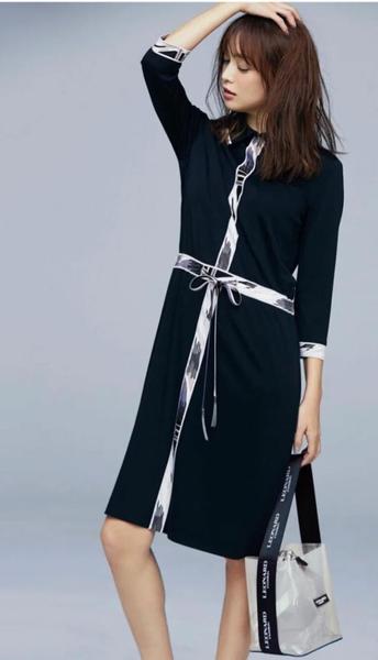 他整体是以黑色为元素。在衣服的中间有采取的是平均分的手法,以白色为屏风。袖口处也有白色的元素,再加上腰间有黑色的腰带可以变成蝴蝶节的形状,给人一种优雅的感觉再搭配一双黑色高跟鞋简直完美至极。
