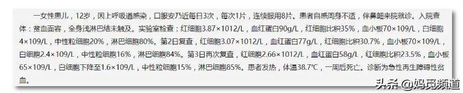 一个 12 岁的小女孩,因为上呼吸道感染口服安乃近,连续服用 8 片后因为全身不适送医。一周后,小女孩死亡,诊断为急性再生障碍性贫血,也就是耸人听闻的白血病。一个鲜活的生命,因为几片药就殒没了。