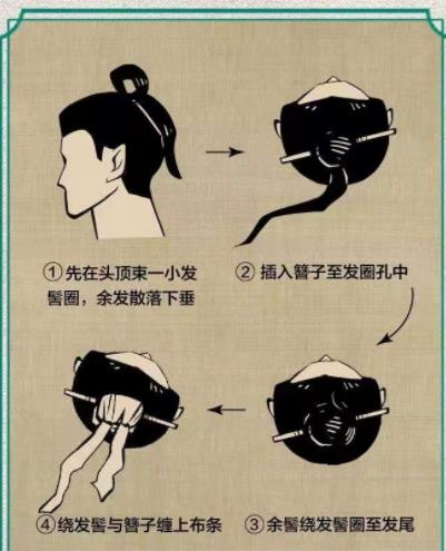 通常说来,在秦代男子到了15岁就意味着成年,成年的时候就会把头发盘起来做成这种“丸子头”,也就标志着这个男子从男孩成长为了少年。然后长到20岁的时候会实行冠礼,即在束发的基础上带上帽子。虽然和女孩子盘起来很相似,但步骤不同,男子会先把头发盘好,再插一根簪子,等于是打了个死结。大概步骤如下: