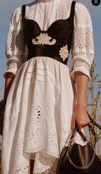 这种内衣外穿式,未来会流行什么样子?也是内衣下,变换式镂空花边类型延露,未来会延展出什么近似式还真说不清楚,但是此款更吸睛很另类,够时尚,还有欧洲田园的感觉
