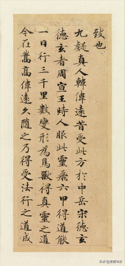 《灵飞经》的布局特点是纵向有规律的行列,横向则自由错落。全篇字体大小不一,长短不拘,疏密相间,变化自如。同时字与字之间、行与行之间彼此呼应,使得整个篇章浑然天成,虽为楷书,却蕴含着行书的流畅和飘逸之感,丰富多变,充满了无穷的魅力和趣味。