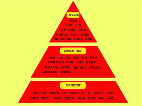 亚洲国家经济贫富状况金字塔划分