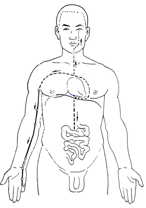 还有手少阴心经,起于心中,走出后属心系,向下穿过膈肌,络小肠。其分支从心系向上,挟着咽喉两旁,连系于目系,即眼球内连于脑的脉络。心经的气血运行状况,对心脏的功能以及神志状态有着重要的影响。